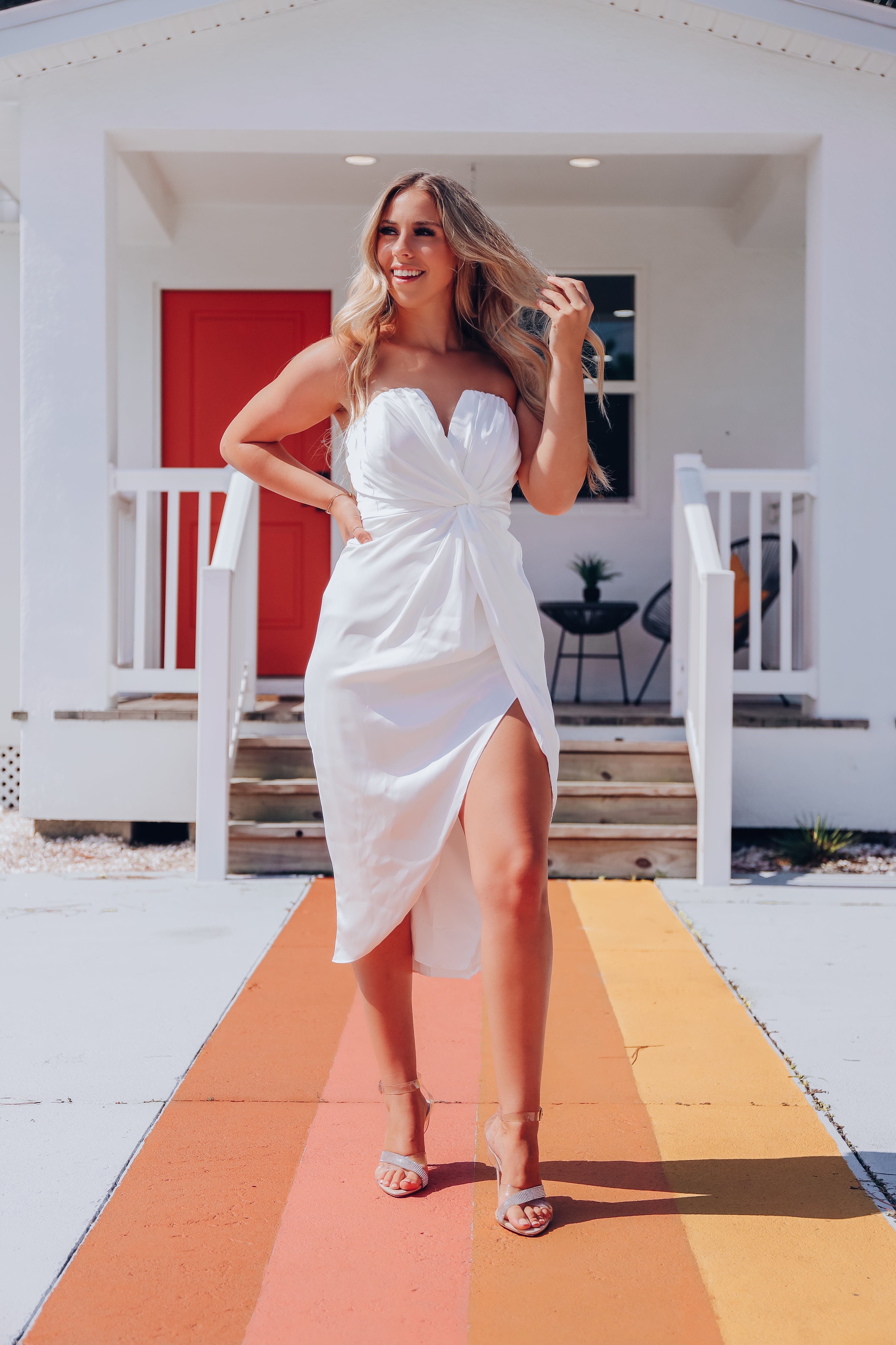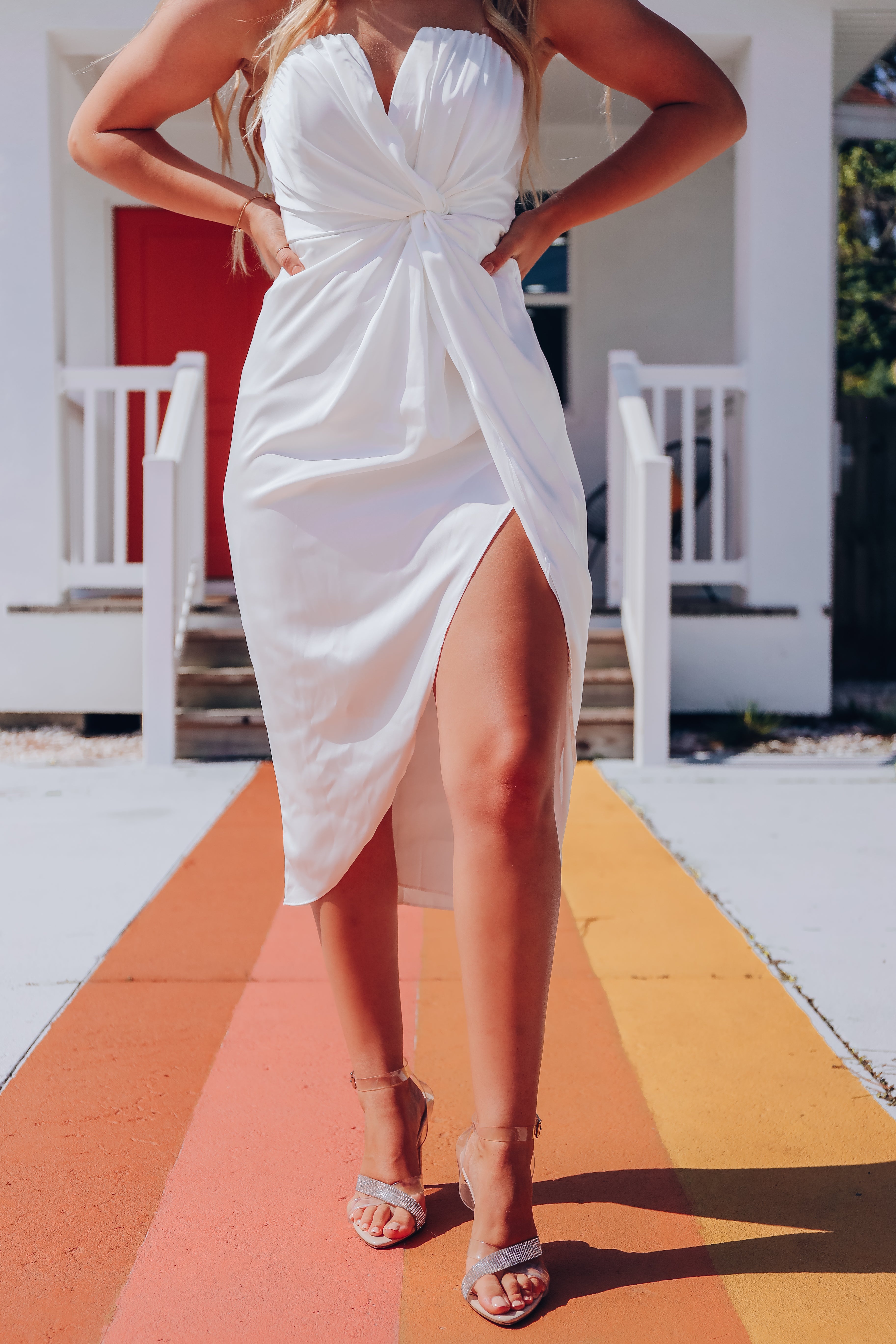 Twisted Strapless Midi Dress – White
