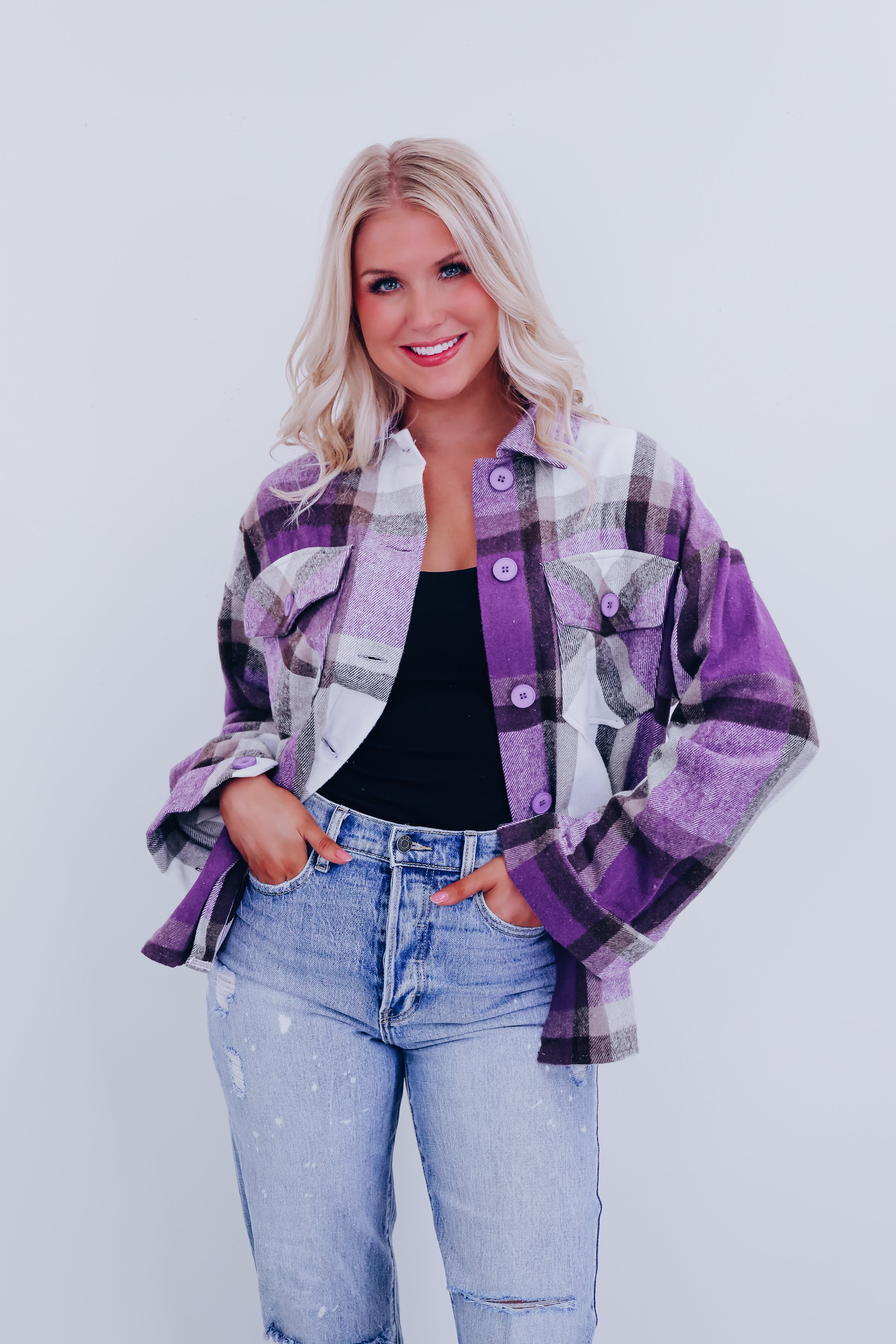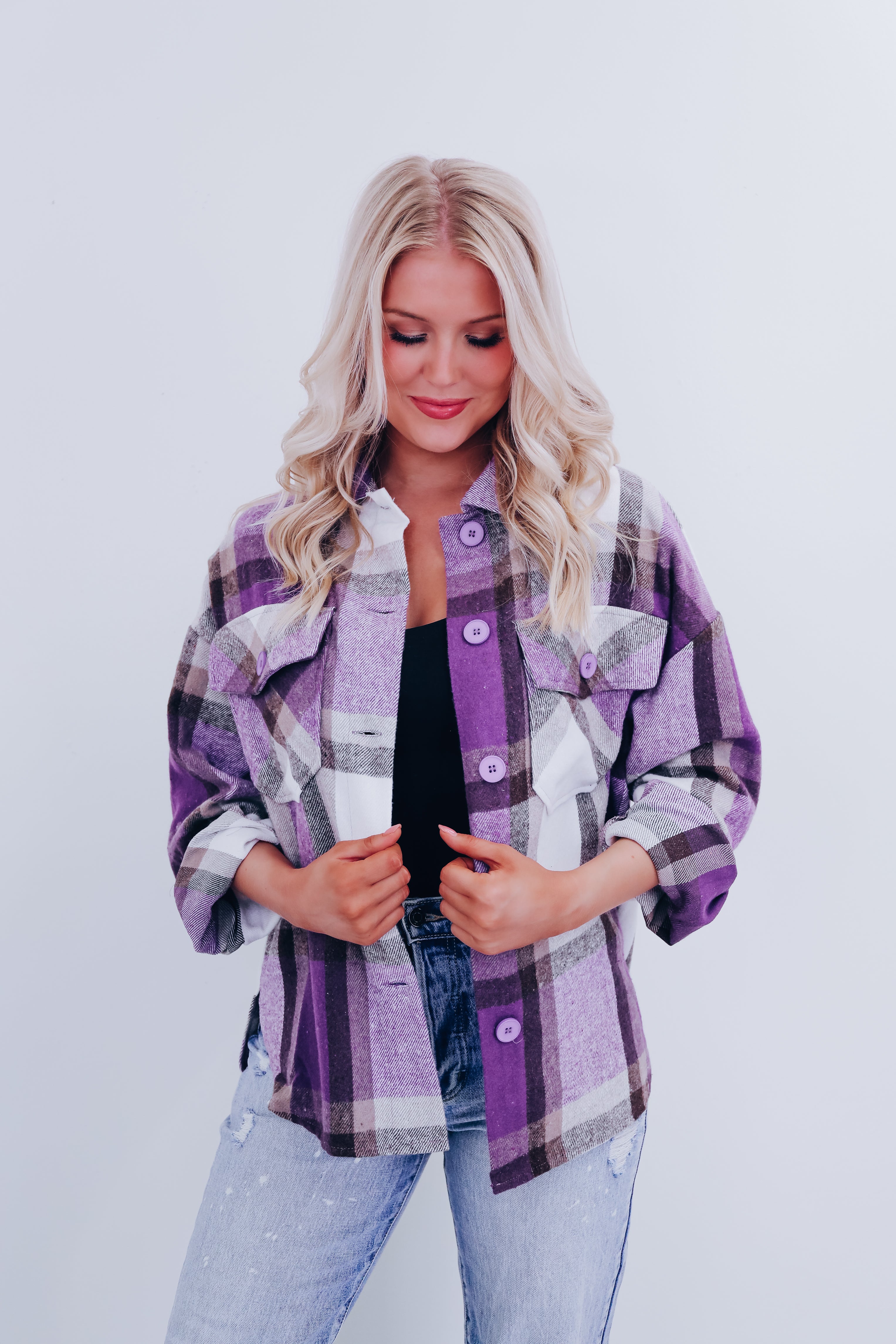 / Iberdist Trendy Time Plaid Shacket – Purple